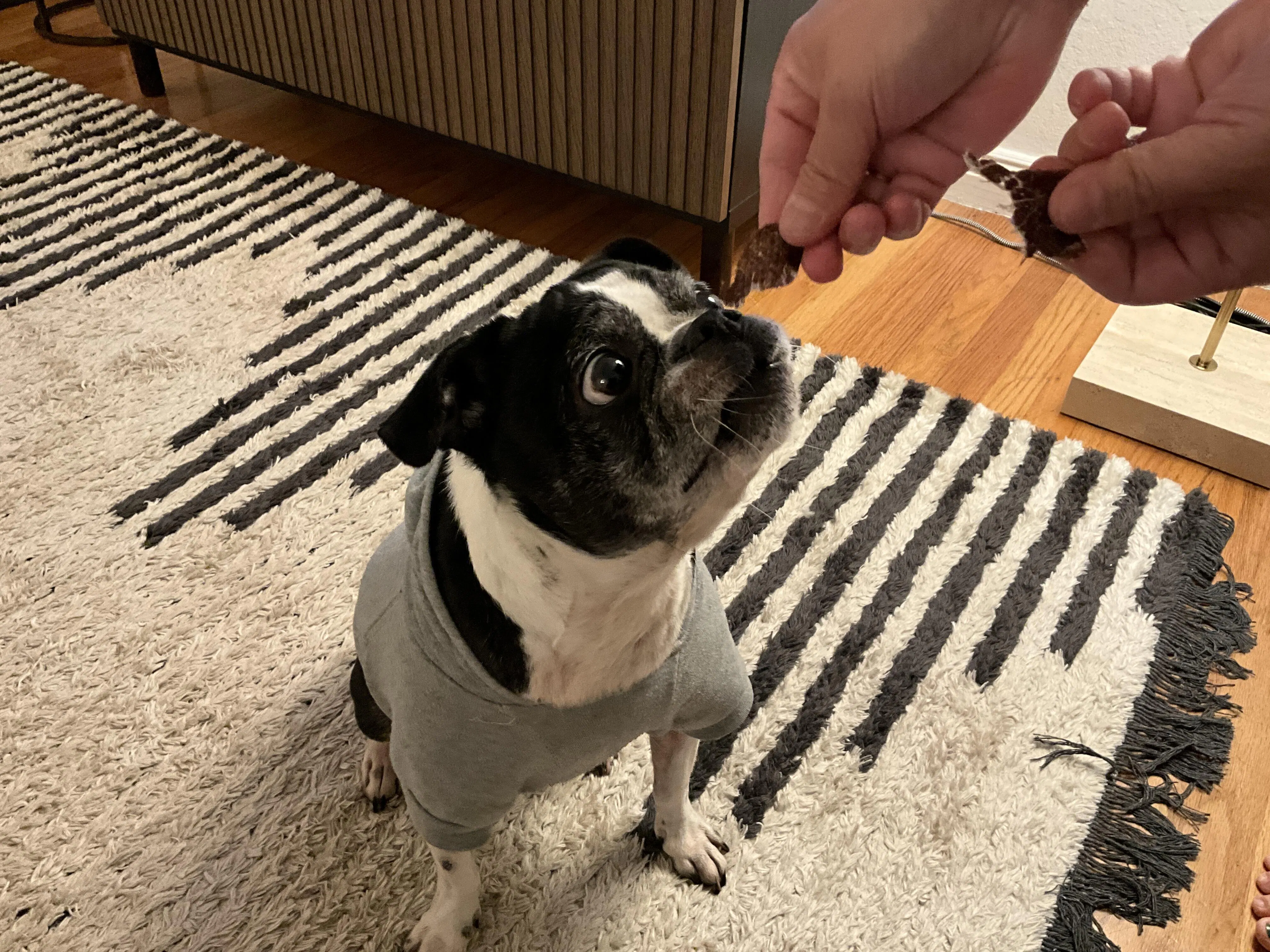After a long drive exploring the California central coast, I decided to treat myself to a protein-style burger from In-N-Out Burger, a popular CA fast food burger chain. Before I could take the first bite of my burger, Luna jumped from the back seat, took the beef patty from my burger, and devoured it before I knew what had happened. I would later discover the “pup patty” (beef patty cooked without salt) on their secret menu. Since then, I always order Luna a ""pup patty"" for her so I can enjoy my burger.